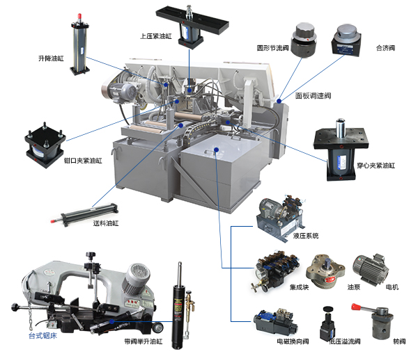 4028,4230,全自動數(shù)控帶鋸床等等配套用液壓產(chǎn)品,一應(yīng)俱全,各知名帶鋸床品牌的金牌供應(yīng)商!