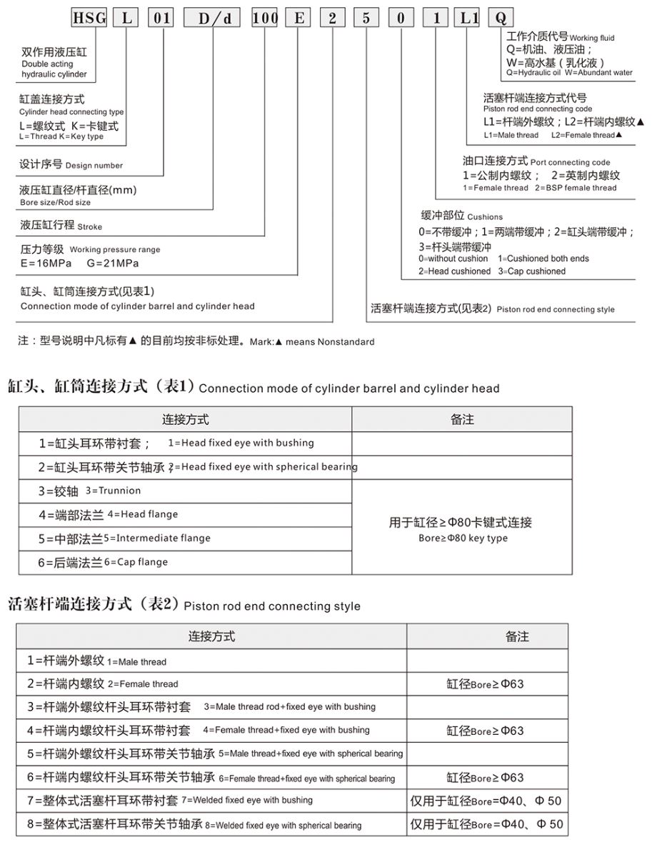 油缸型號說明