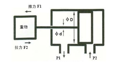 從上面公式可以看出,由于油缸在作推動(dòng)和拉動(dòng)時(shí)受壓面積不同,故所產(chǎn)生的力也是不同,即: