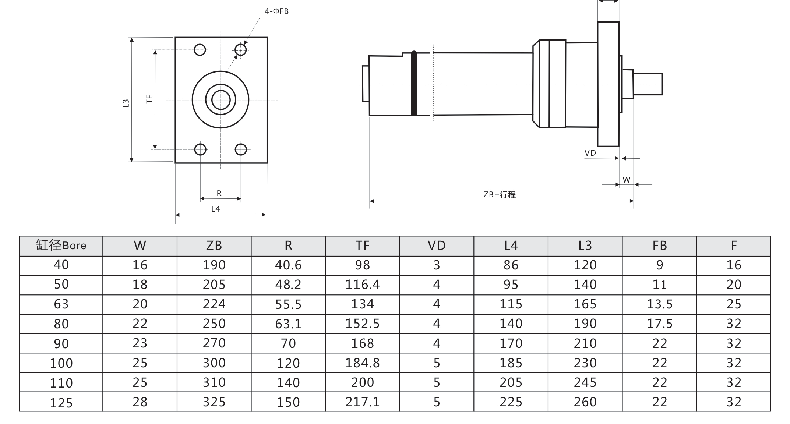 頭部長(zhǎng)方法蘭外形安裝尺寸圖