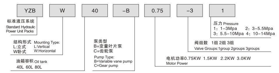 小型標(biāo)準(zhǔn)液壓泵站型號(hào)命名方式: